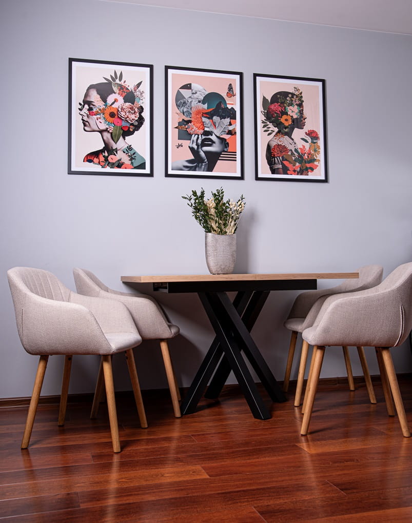 Stół bardzo solidnie wykonany. W aranżacji dużego pokoju wygląda przepięknie. Bardzo wygodnie się go rozkłada ze względu na stelaż zsynchronizowany.