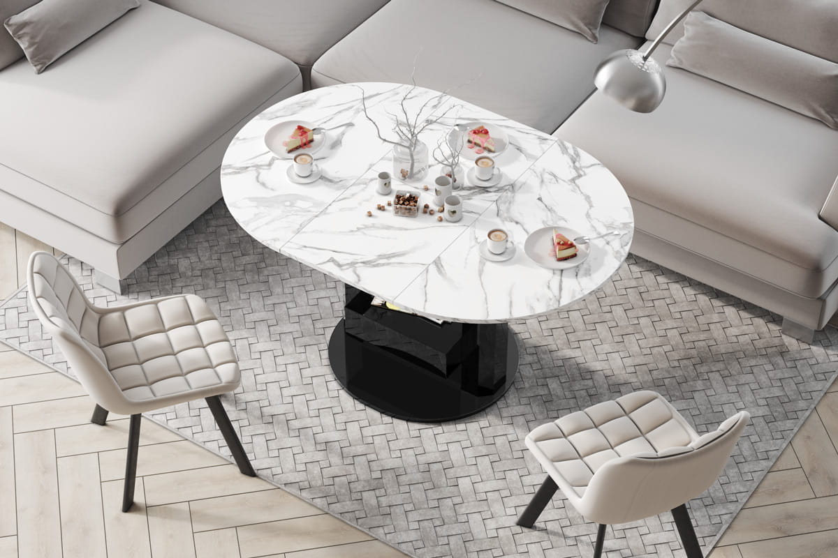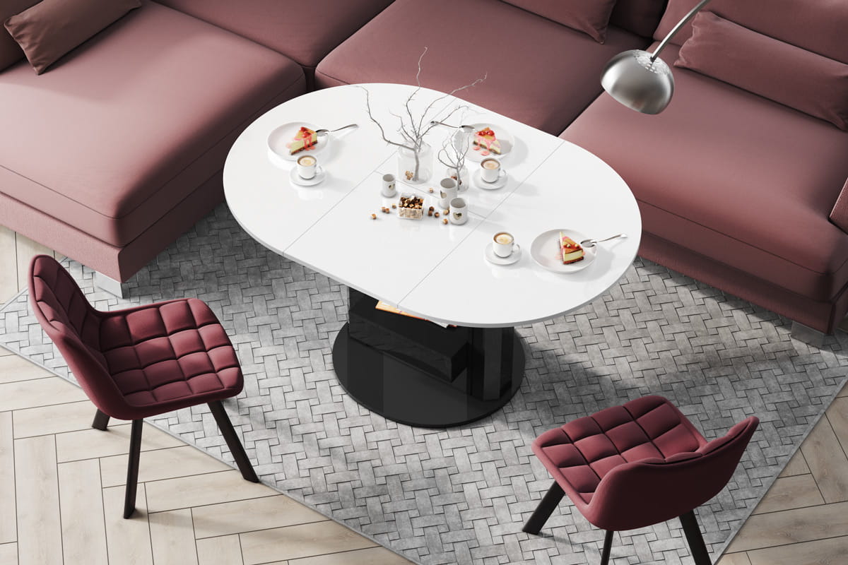 Funkcja rozkładania sprawia, że w kilka chwil przekształcisz ławę w pełnowymiarowy stół. Powierzchnia blatu zwiększa się z 100 cm do 144 cm, dzięki czemu zyskujesz więcej miejsca na rodzinne obiady czy spotkania z przyjaciółmi. Wkładka powiększająca jest ukryta pod blatem, co dodatkowo podkreśla nowoczesny i minimalistyczny design.