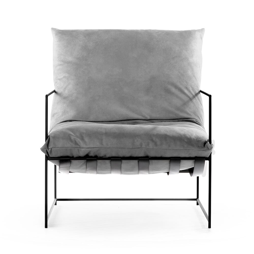 Minimalistyczny fotel tapicerowany ELVIS w stylu loftowym metalowy jasny szary, nogi metalowe czarne