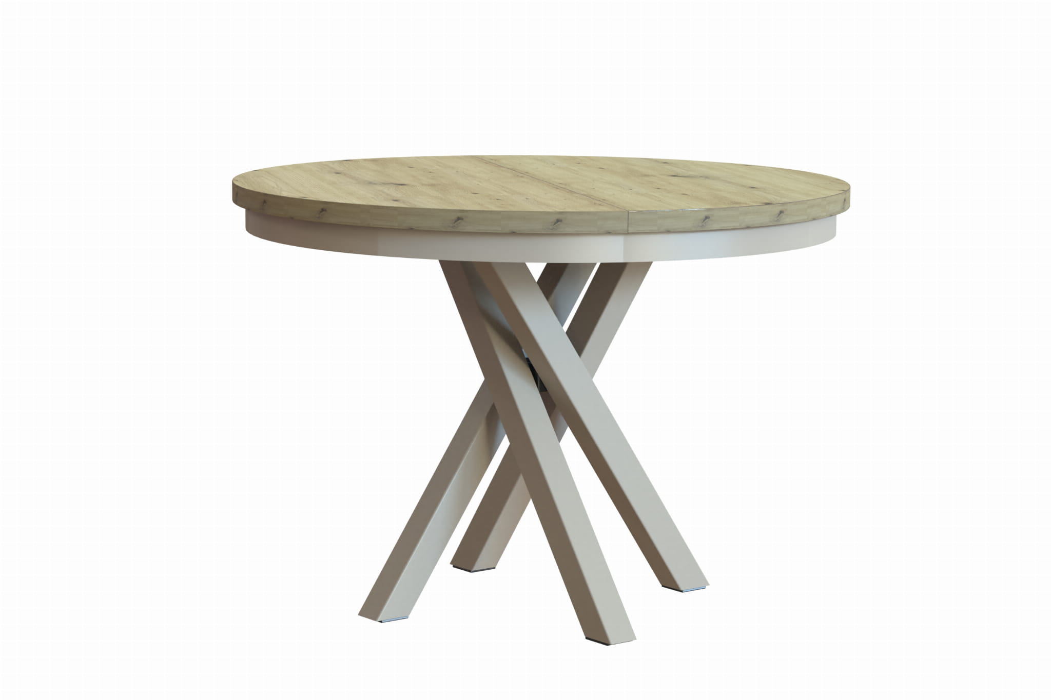 Stół BERGAMO to połączenie industrialnej elegancji i funkcjonalnego designu, stworzone z myślą o współczesnych wnętrzach. Jego okrągły blat o średnicy 100 cm z możliwością rozłożenia do 138 cm sprawia, że z łatwością dopasowuje się do codziennych posiłków, ale też większych spotkań rodzinnych i towarzyskich.