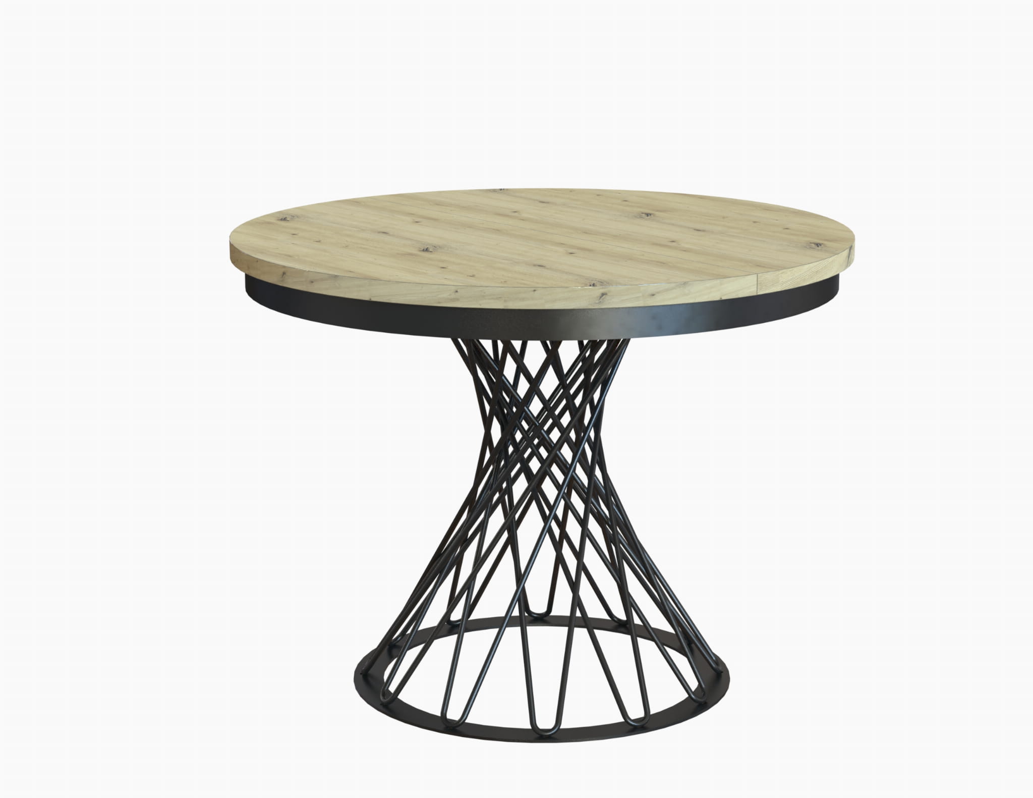 Stół loftowy rozkładany okrągły ARTE 100/138 cm – dąb artisan, czarne metalowe nogi