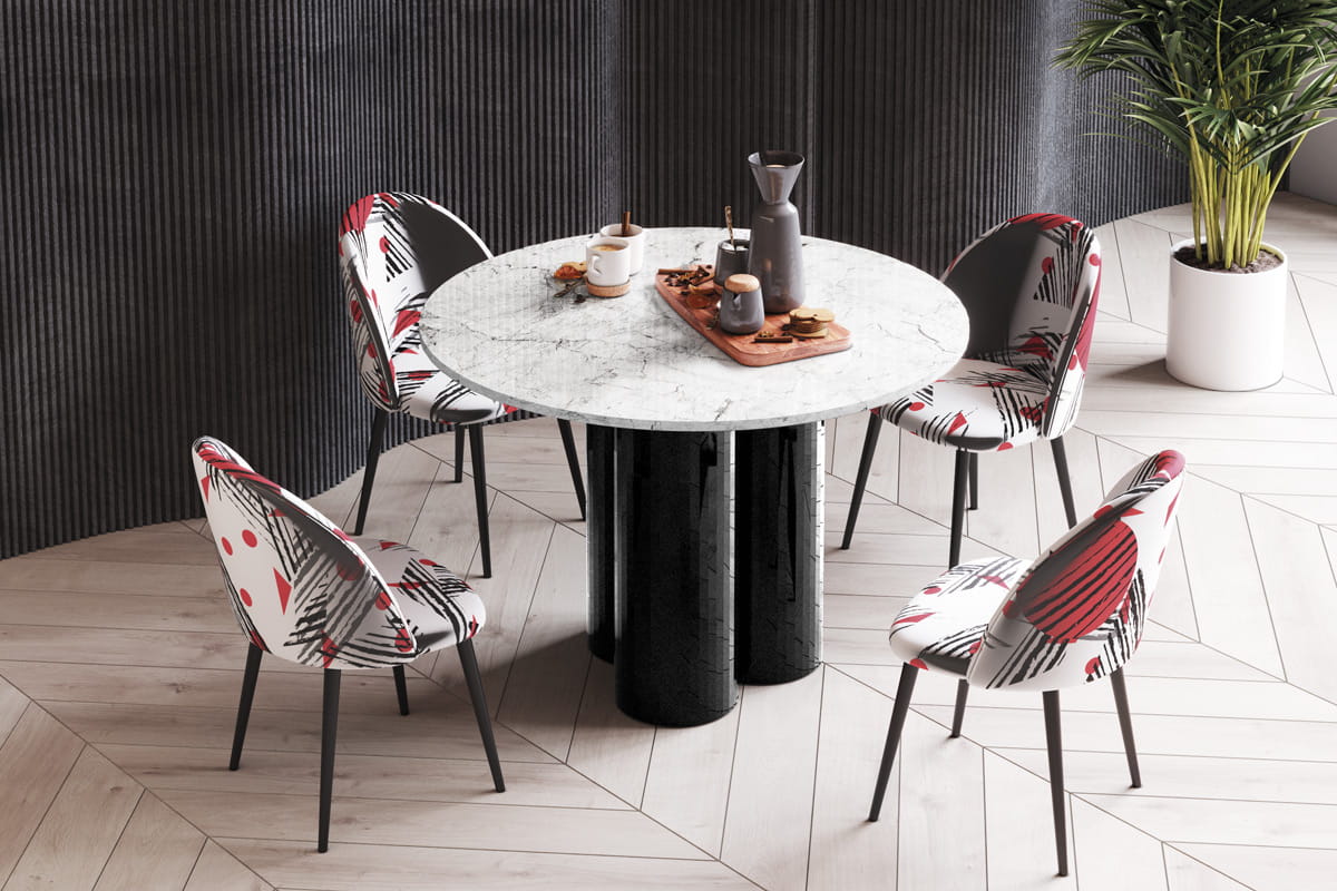 Stół okrągły AVENDO to doskonałe połączenie nowoczesnego stylu i wysokiej funkcjonalności, które sprawdzi się w każdej eleganckiej przestrzeni. Dzięki okrągłemu blatowi o średnicy 100 cm oraz unikalnej podstawie na trzech kolumnowych nogach, mebel prezentuje się lekko i designersko, a jednocześnie zapewnia stabilność i komfort użytkowania.